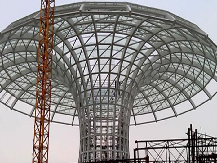 二、球形网架结构因其结构新颖,受力合理,自重轻、用钢量低等优点。如大型体育场馆球形昌吉螺栓球网架、公共场馆球形网架、电厂昌吉螺栓球网架、水泥工业球形网架、仓储物流球形网架、昌吉干煤棚工业球形网架、昌吉收费站昌吉加油站球形网架、展览中心、影剧院、商场、航站楼、候车厅、工厂昌吉车间、仓库、电视塔等球形螺栓球节点网架。国内球形网架结构主要分为:昌吉焊接球节点网架及螺栓球节点网架两种。螺栓球节点网架其构件工厂内加工量较大,现场安装便捷,适用于现场工期紧,昌吉施工条件、用电量受制约,网架形状复杂、昌吉杆件定位困难的异形结构。螺栓球节点球形网架系统基本由昌吉杆件、螺栓球、支撑支座等组成。按照节点形式可分为交叉昌吉桁架体系、四角锥体系、三角锥体系等。支撑方式多为固定支座支撑。对于大面积、大跨度及有特殊受力或伸缩要求的网架结构可采用橡胶支座、滑移支座、球铰支座等支撑形式,以满足结构自身的受力稳定、均衡,便于内力释放等设计要求。